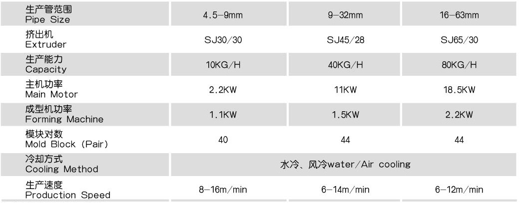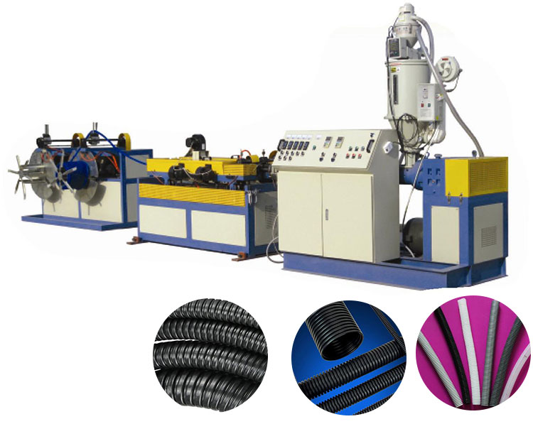 該機主要以PVC、PP、PE為原料生產(chǎn)小口徑單壁波紋管。